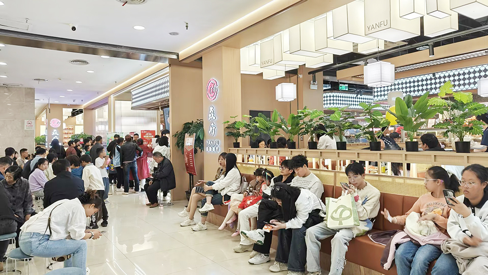 逛到饭点,直奔四楼吃货天堂!食蟹记、轻烧烤肉、小菜园等特色餐饮齐聚,徽菜、川菜、港式风味全覆盖,清淡党、重口味都能找到心头好。吃饱喝足,在商场里慢悠悠溜达,满眼绿意盎然,无死角动线设计搭配贴心休息区,舒适度拉满,逛街也能很惬意。